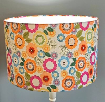 Standing 1.57 metres tall, this unique piece features a vibrant floral lampshade (measuring 40cm wide by 25cm high) that adds a playful burst of personality to any room.