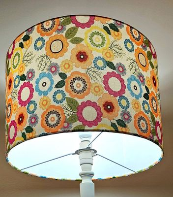 The wooden base has been freshly painted in a soft cream, offering a clean, modern contrast to the colourful shade.