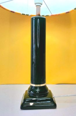 Green Ceramic Lamp with Retro Orange Floral Shade