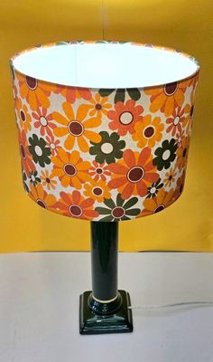 Brighten your home with this vibrant and cheerful lamp featuring a glossy deep‑green ceramic base and a bold orange retro‑floral lampshade. The oversized daisy pattern brings a warm, nostalgic 70s feel—perfect for adding colour and personality to any room.